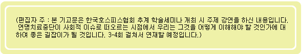 | Á¸¾ö»ç¹ý¿¡ ÀÇÇÏ¸é ¿¬¸íÄ¡·á´Â Áß´ÜÇÏ´õ¶óµµ ÅëÁõ°ü¸®³ª »ý¸®±â´ÉÀ» µµ¿ÍÁÖ´Â ¿ÏÈÄ¡·áÀÇ ½Ã¼úÀº °è¼ÓÇÏ¿©